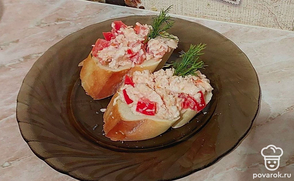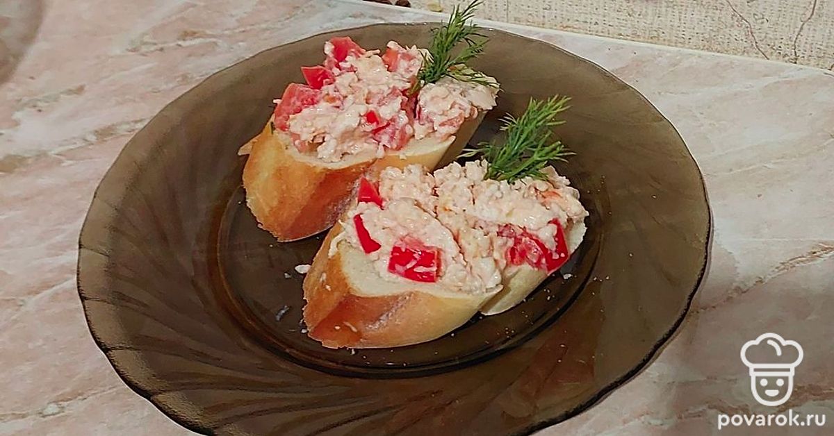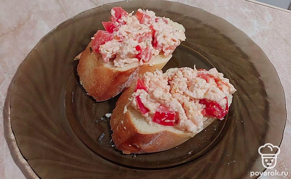 Брускетта с помидором и копченой грудкой