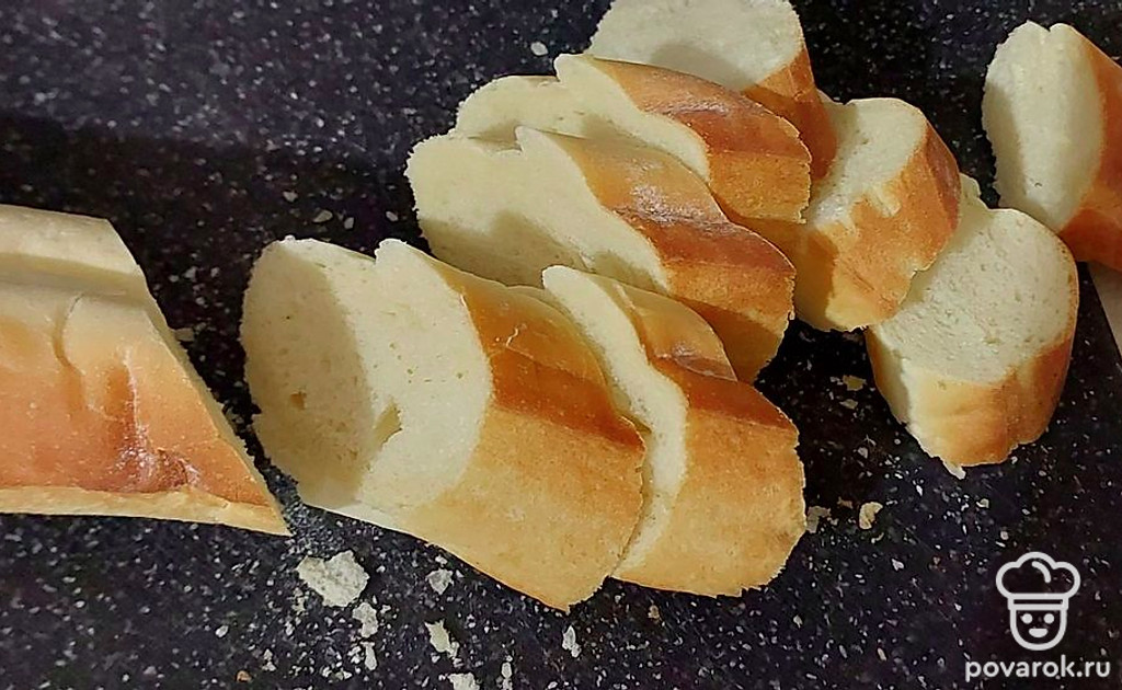 Багет нарежьте ломтиками.