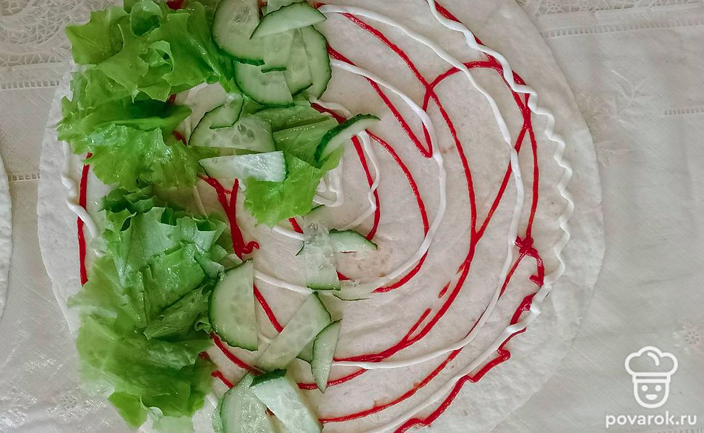 Нашинкуйте огурцы, выложите их следующим слоем.