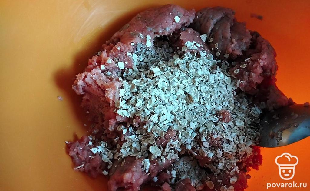 Солим и перчим по вкусу. Хорошо перемешиваем. Даем немного постоять, чтобы овсянка набухла.