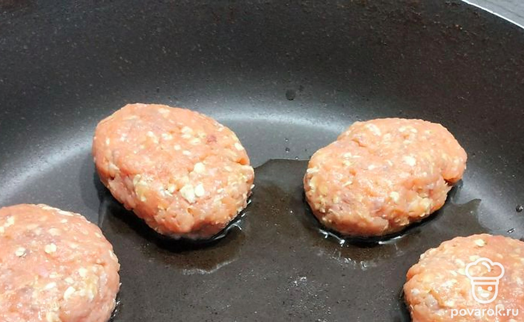 Разогреваем сковороду, смазываем маслом и выкладываем котлеты. Жарим по 3-4 минуты с каждой стороны до золотистого цвета.