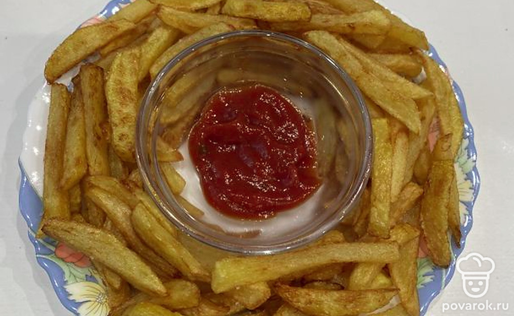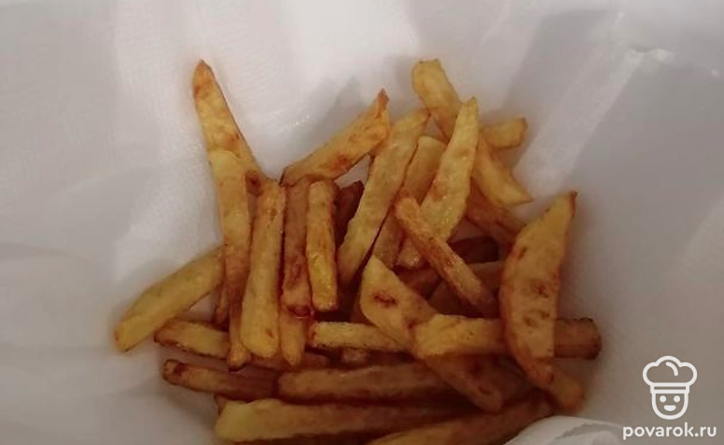 Готовый картофель выкладываем на салфетку, чтобы стек лишний жир. Далее перекладываем в тарелку и падаем на стол.