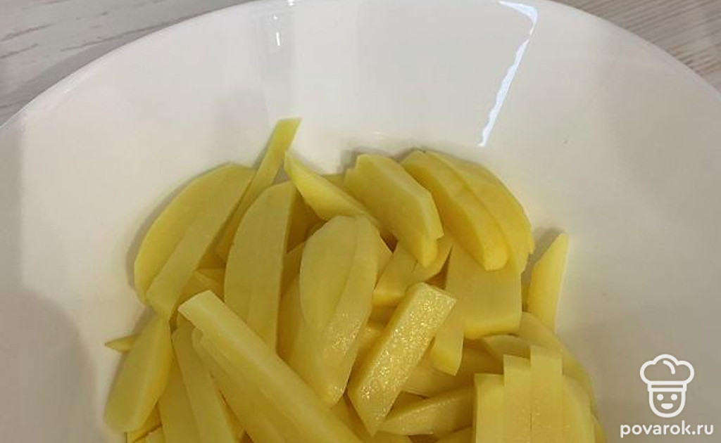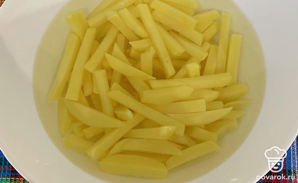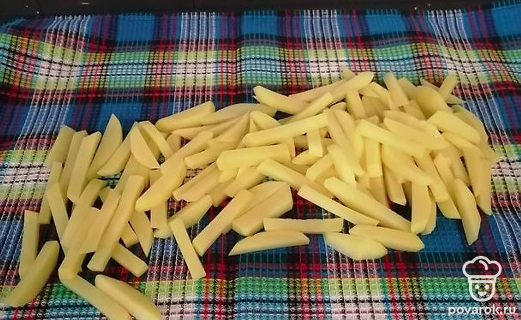 Далее слить воду, картофель выложить на полотенце, даём подсохнуть.