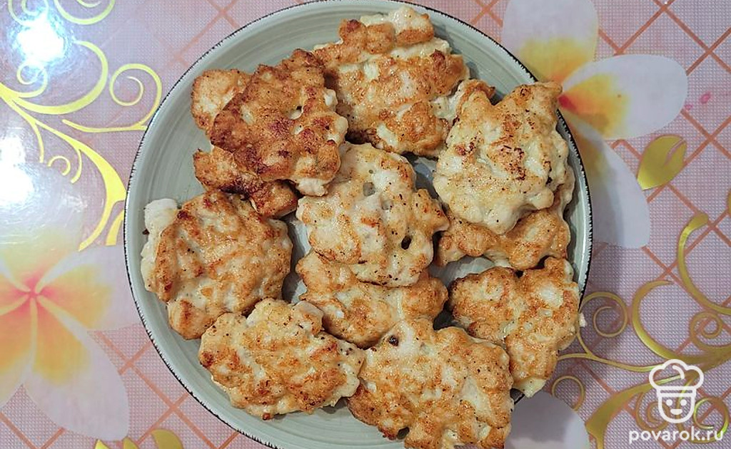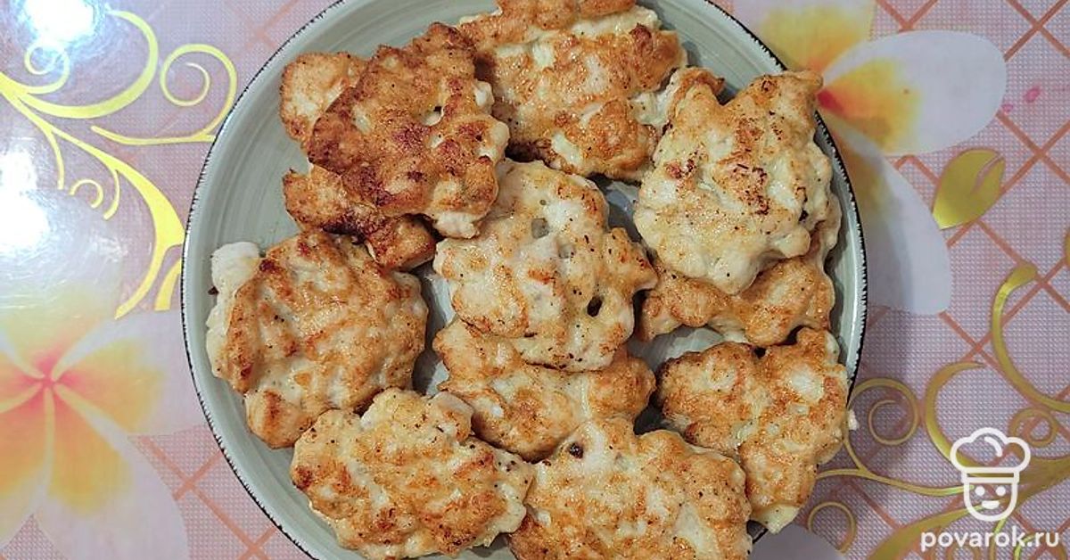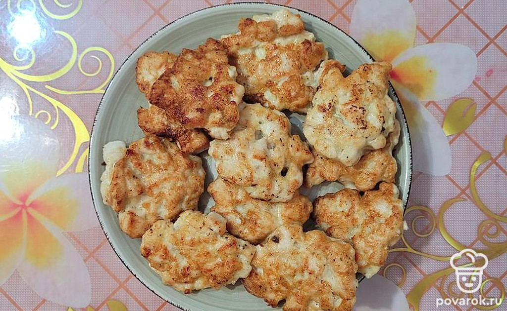 На разогретую сковороду с растительным маслом выложите ложкой получившийся фарш. Жарьте на среднем огне под крышкой 7 минут с каждой стороны, до золотистого цвета.