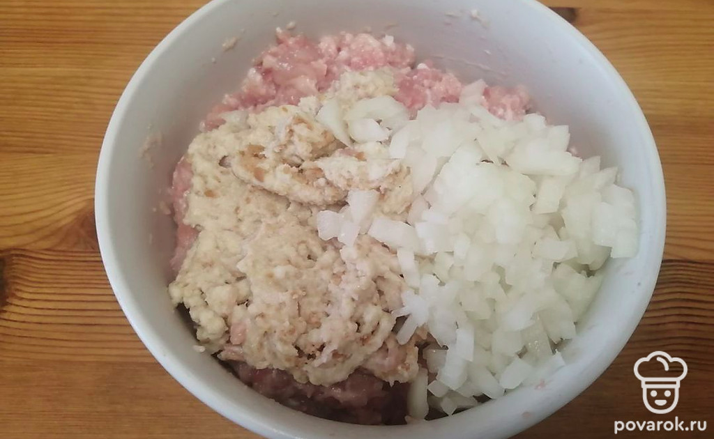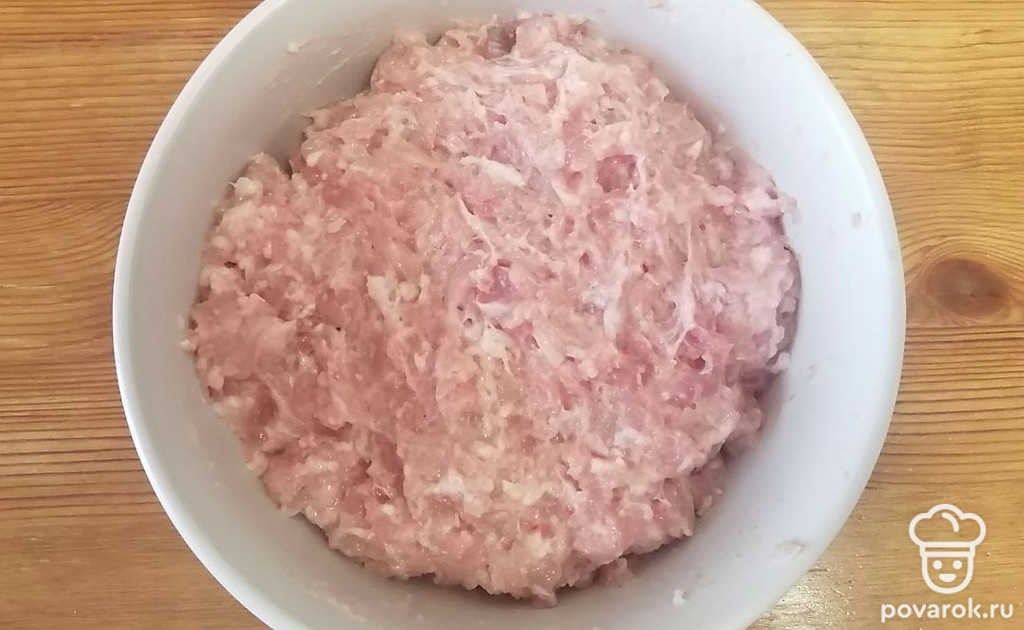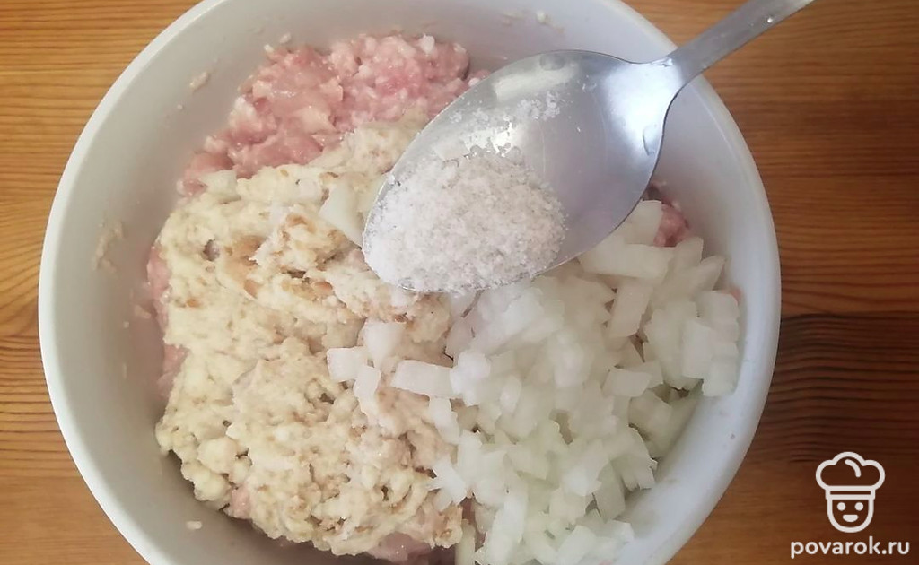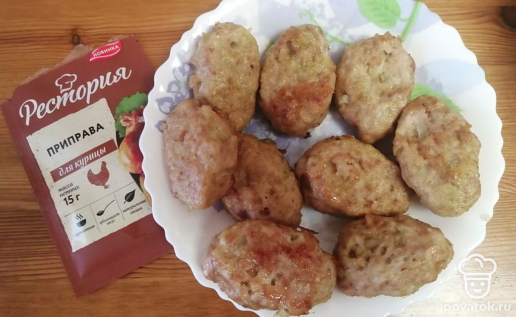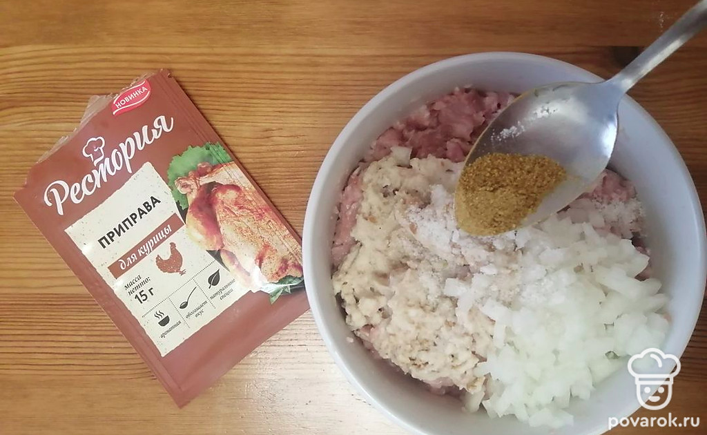 Добавьте в фарш приправу для курицы, хорошо перемешайте.