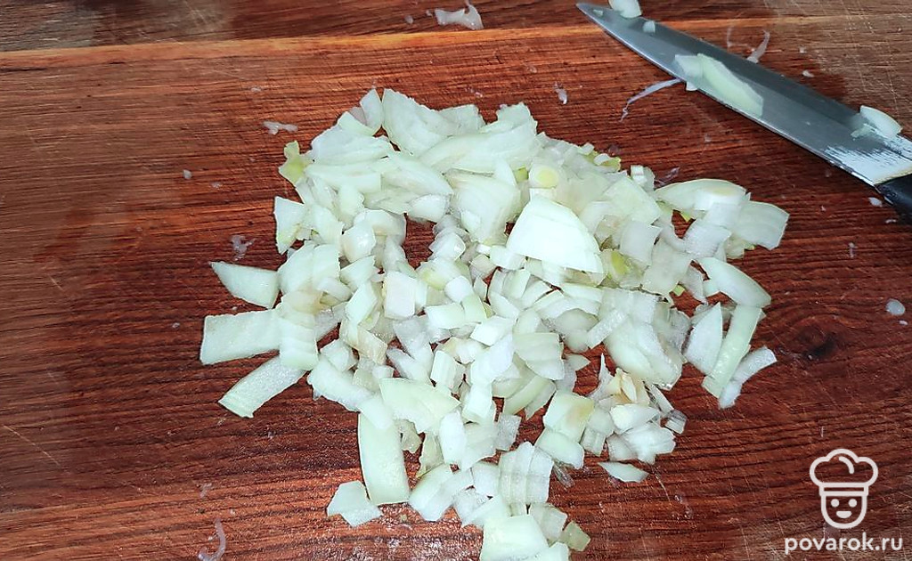 Лук нарежьте мелким кубиком.