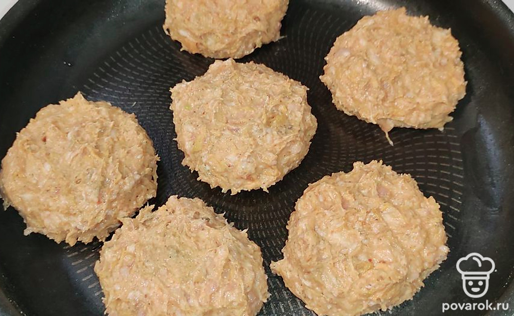 Сформируйте котлетки привычной формы, выложите их в форму для запекания. Запекайте в разогретой духовке 30 минут при 180-200 градусах. Приятного аппетита!