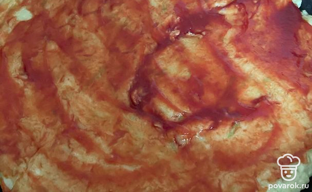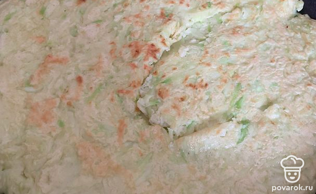 Готовое тесто выкладываем на сковородку, ставим на маленький огонь под крышку.