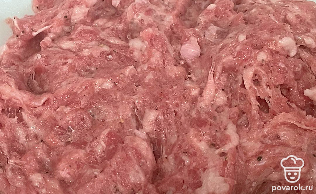 Фарш приправите солью, черным молотым перцем и паприкой.