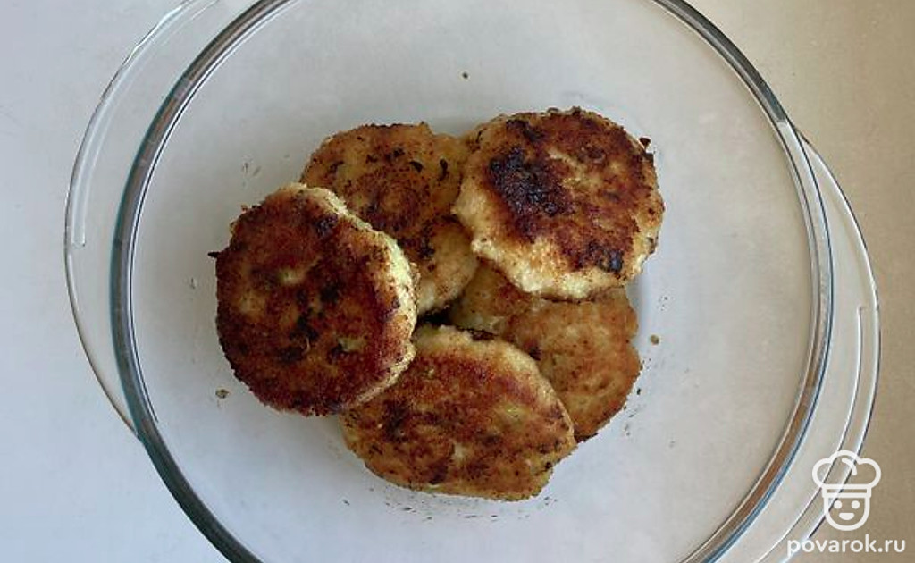 Обваляйте шарики из фарша в панировочных сухарях, сформируйте котлетки. Обжарьте их на разогретой сковороде с маслом, переворачивая.