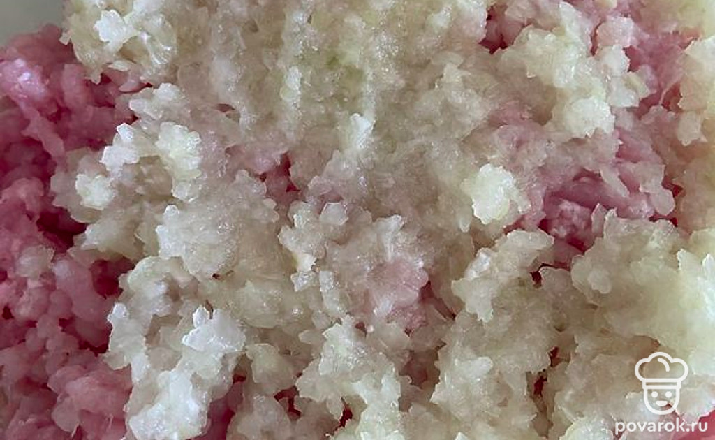 Натрите на мелкой терке лук, добавьте к фаршу из индейки.
