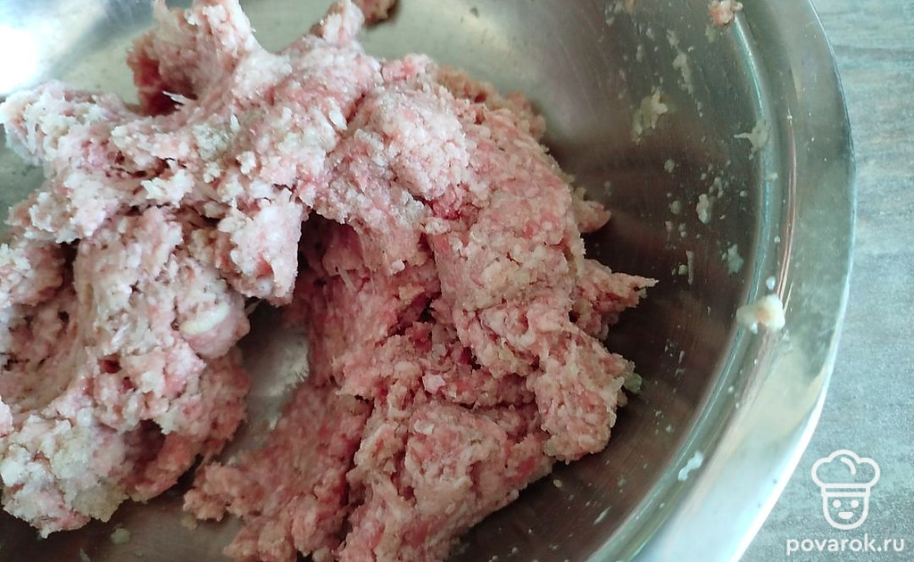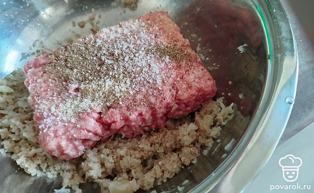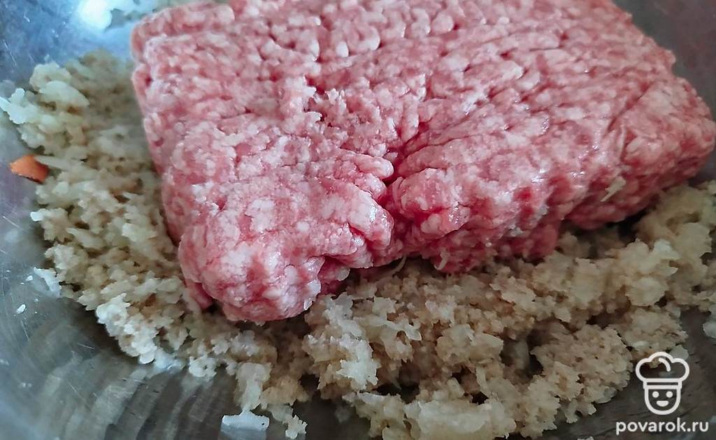 Размочите хлеб, натрите на крупной терке лук, добавьте фарш.