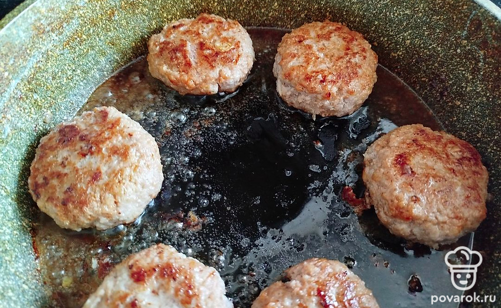 Переверните котлеты, накройте сковороду крышкой, убавьте огонь. Томите 15 минут.