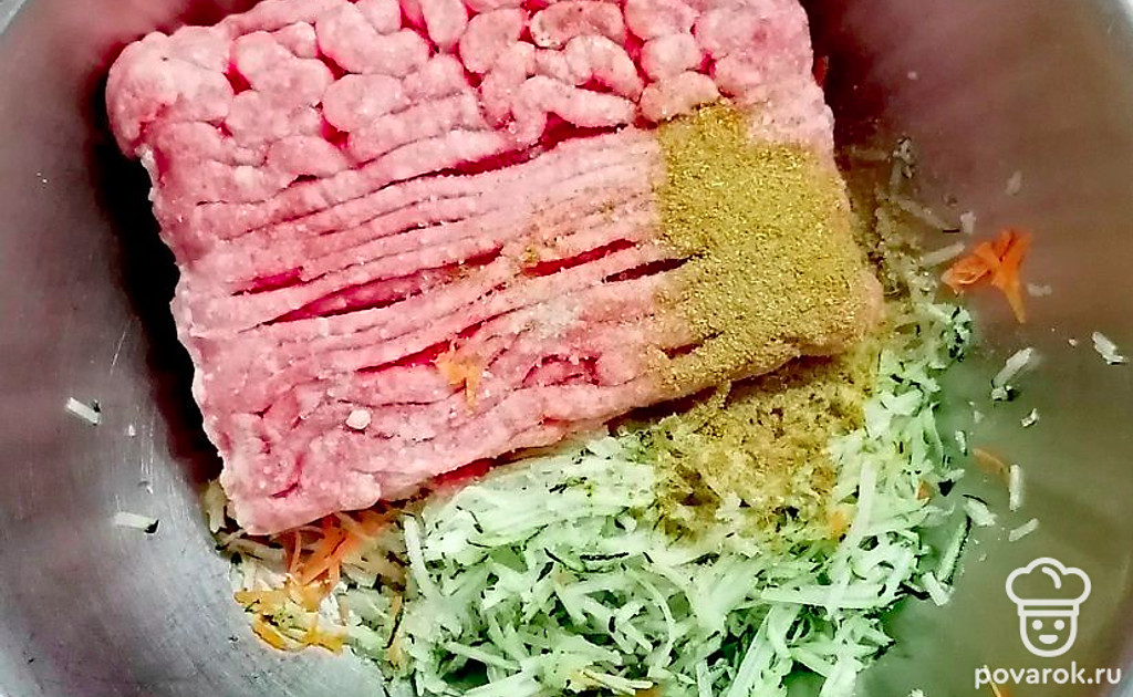 Фарш хорошо перемешайте.