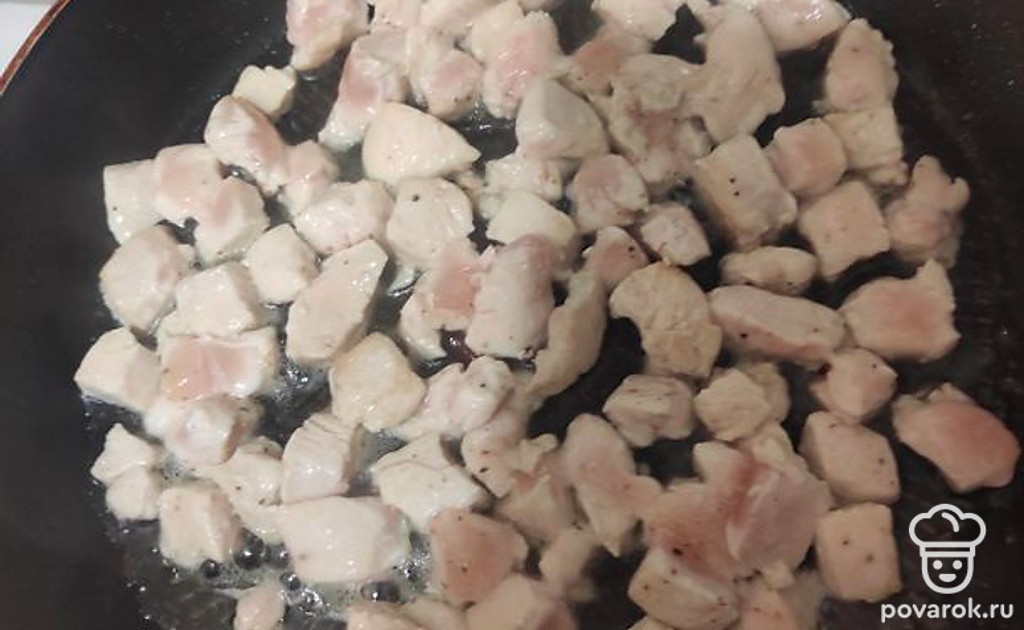 Выложить на разогретую сковороду, смазанную растительным маслом, посолить и поперчить. Жарить на умеренном огне 10-15 минут до готовности.