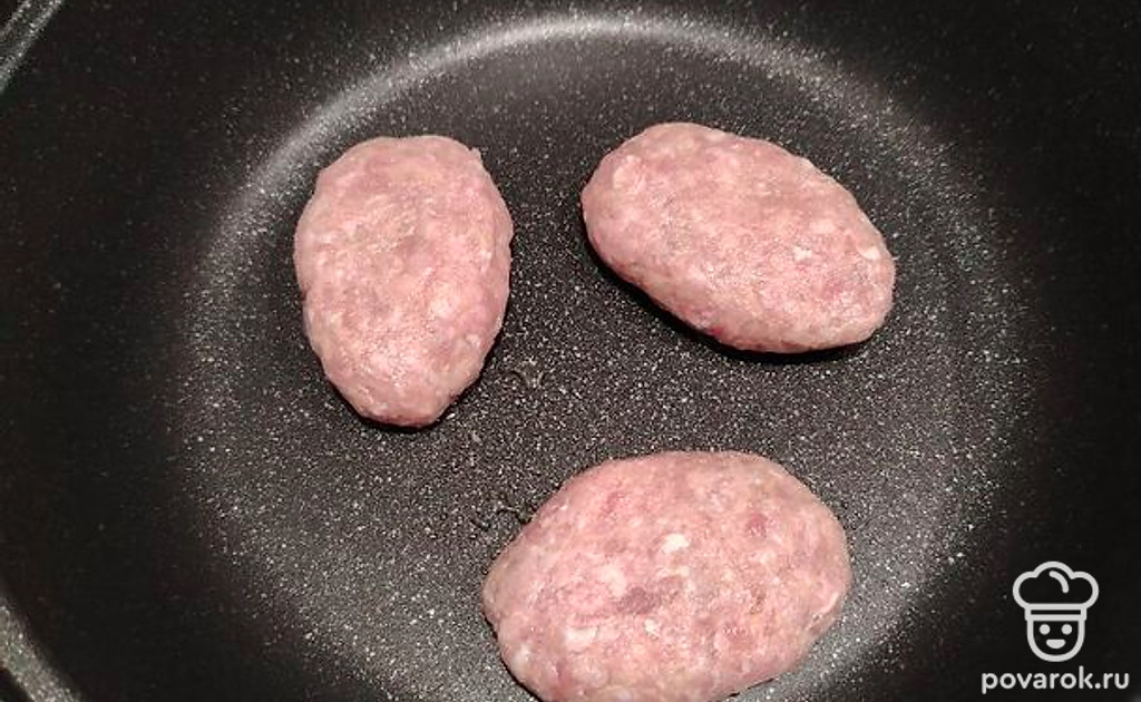 Сформируйте котлетки произвольной формы. Выложите на разогретую сковороду. Жарьте по 6 минут с каждой стороны.