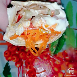 Муж любит шаурму, раньше я её не готовила дома. Теперь решила готовить постоянно, домашняя еда всегда вкуснее и свежее. Сочная курица и овощи в сочетании с корейской морковью. Слюнки потекут.