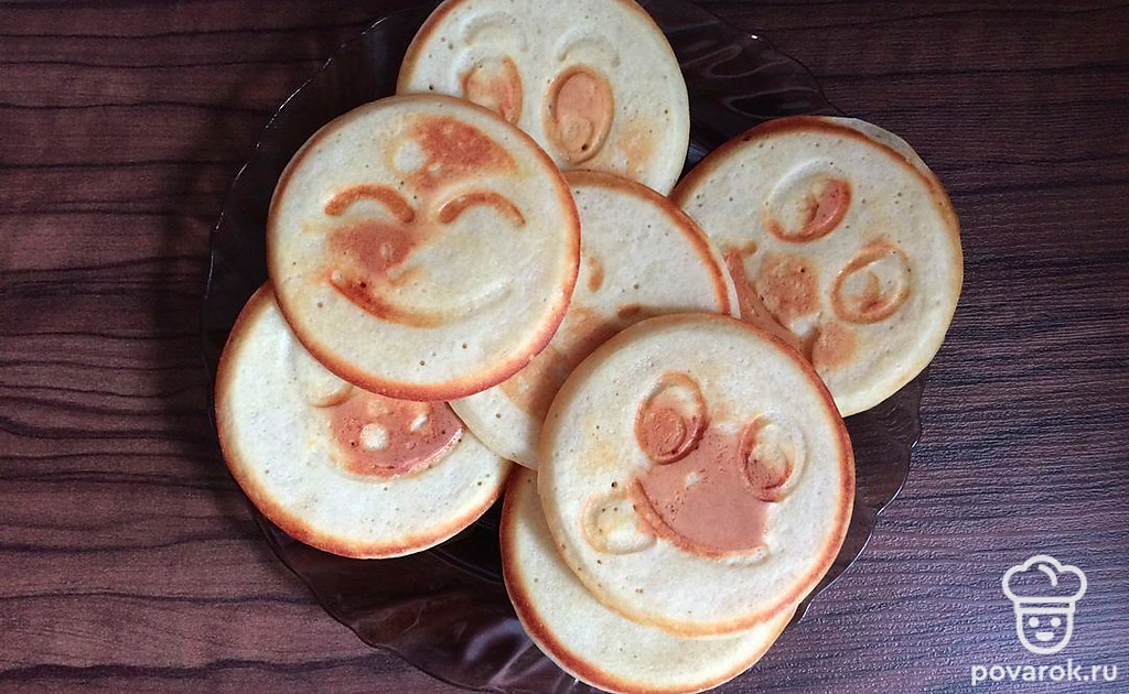 Оладьи готовятся легко. Они особенно понравятся детям, если их приготовить на специальной сковороде для оладий со смайликами.