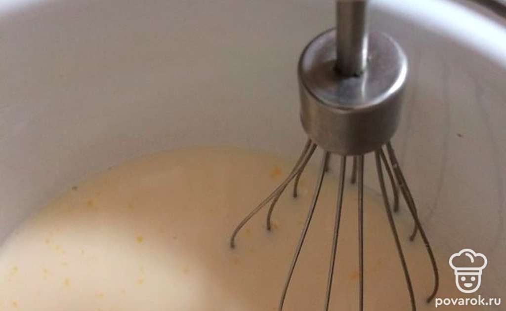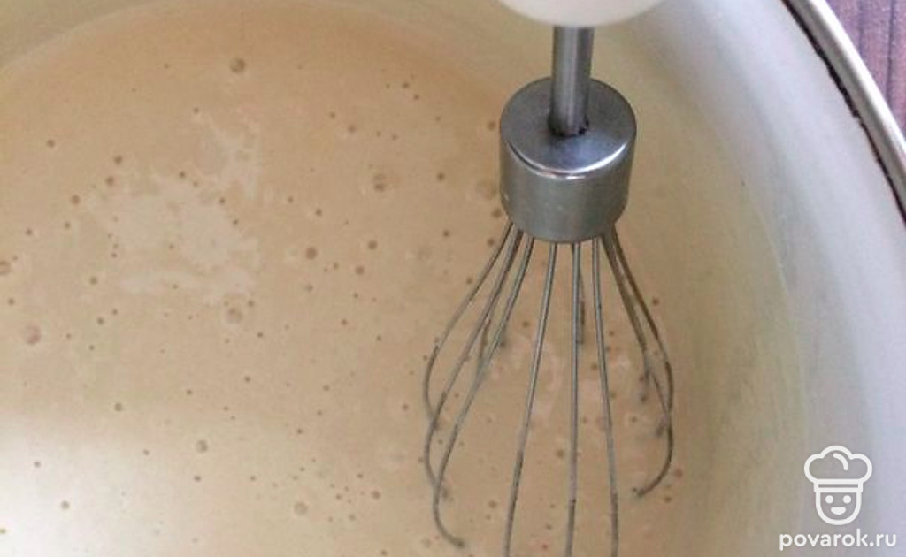Добавьте молоко, муку и все составляющие. Перемешайте до однородной массы.