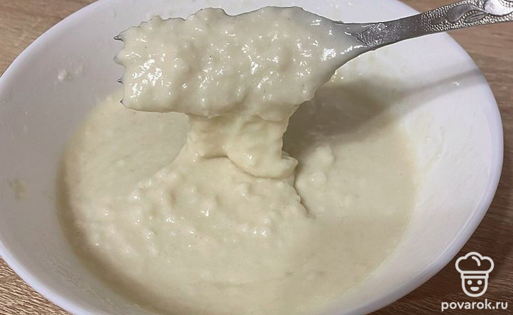 Влейте немного воды и начинайте перемешивать. Нужно, чтобы смесь стала густой как сметана.