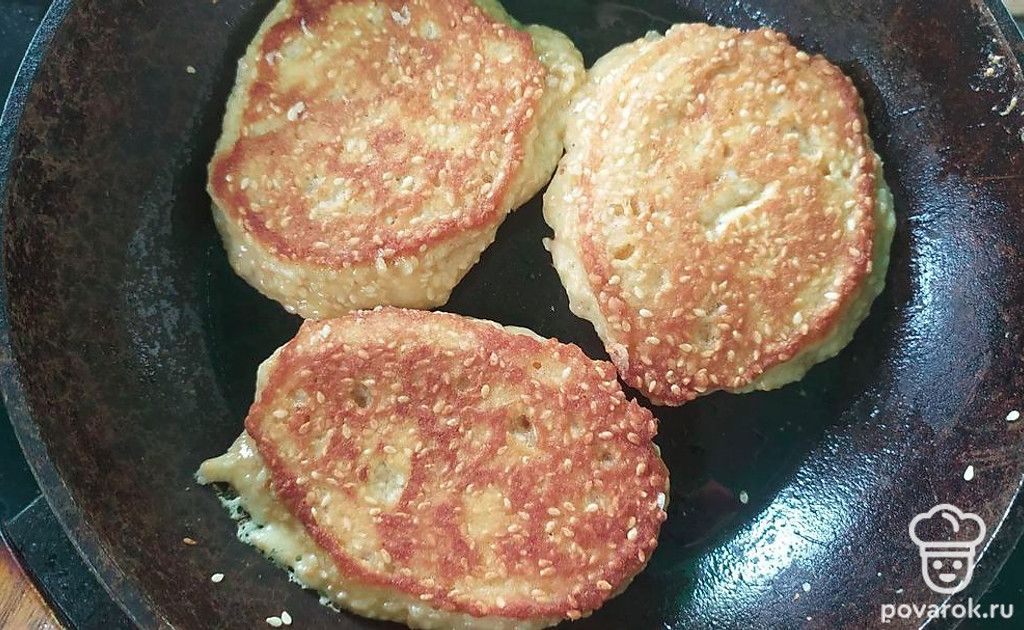 Выкладывайте ложкой получившуюся массу на разогретое растительное масло, формируя оладьи.