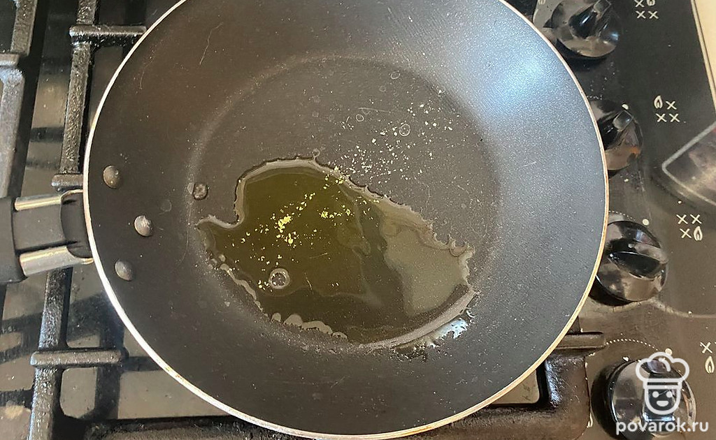 На разогретую сковороду добавьте немного масла, если у вас сковорода антипригарная,, то этот шаг можете пропустить.