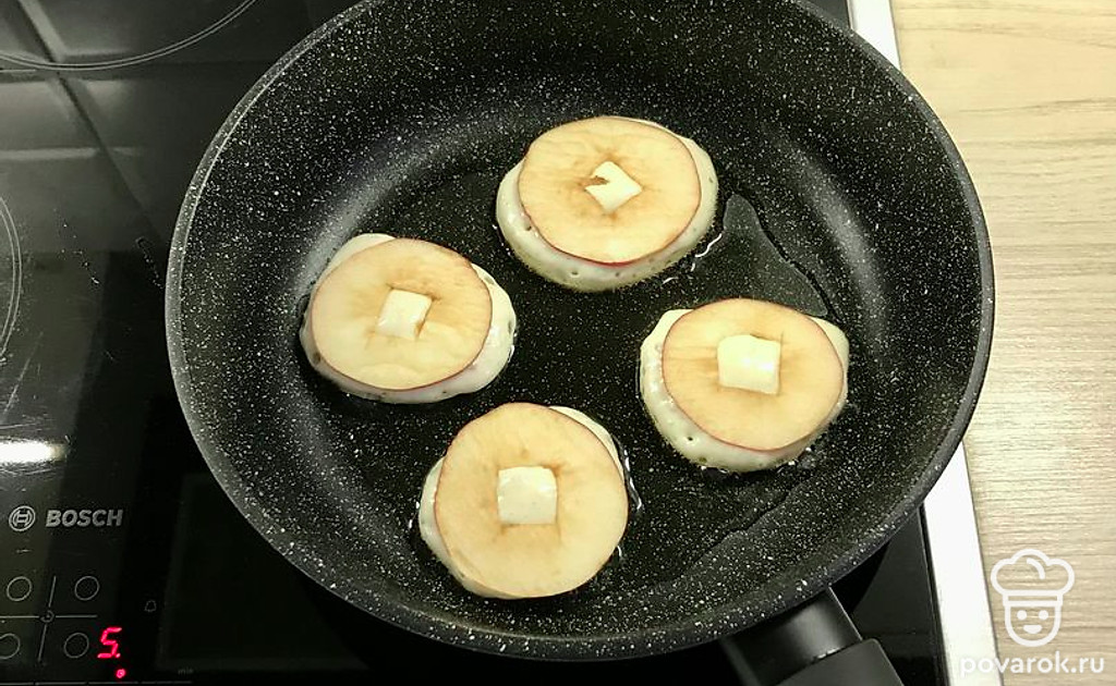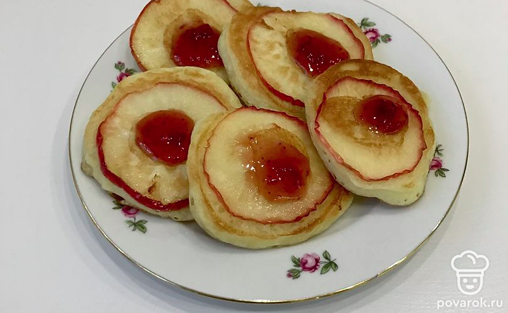 Одна из лучших вариаций оладий - оладьи с яблочным припёком. Прогретые на горячей сковороде яблоки становятся настолько ароматными и выразительными, что отказаться невозможно.