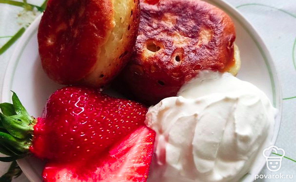 Очень вкусны оладьи и со сметаной и с джемом, ну и с кусочками ягод. Приятного аппетита!