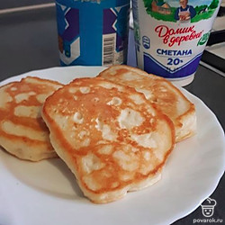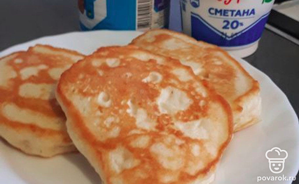 Подавать порционно со сметаной, сгущенкой, вареньем.
