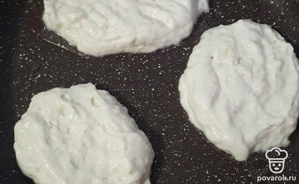 С помощью столовой ложки сформировать оладьи, выпекать с маслом на сковороде.