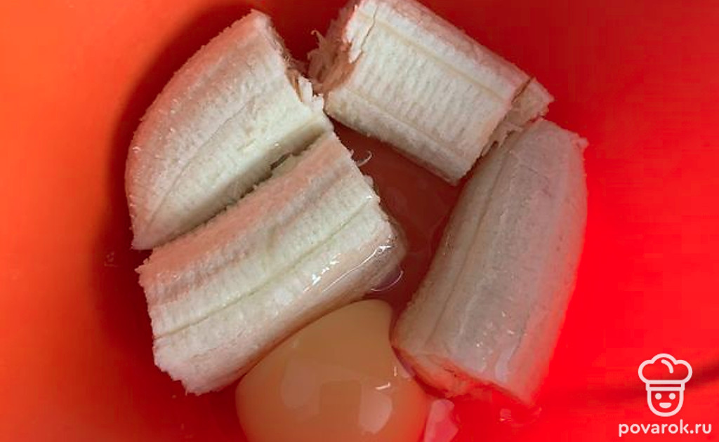 Измельчить банан вилкой и смешать с яйцом.