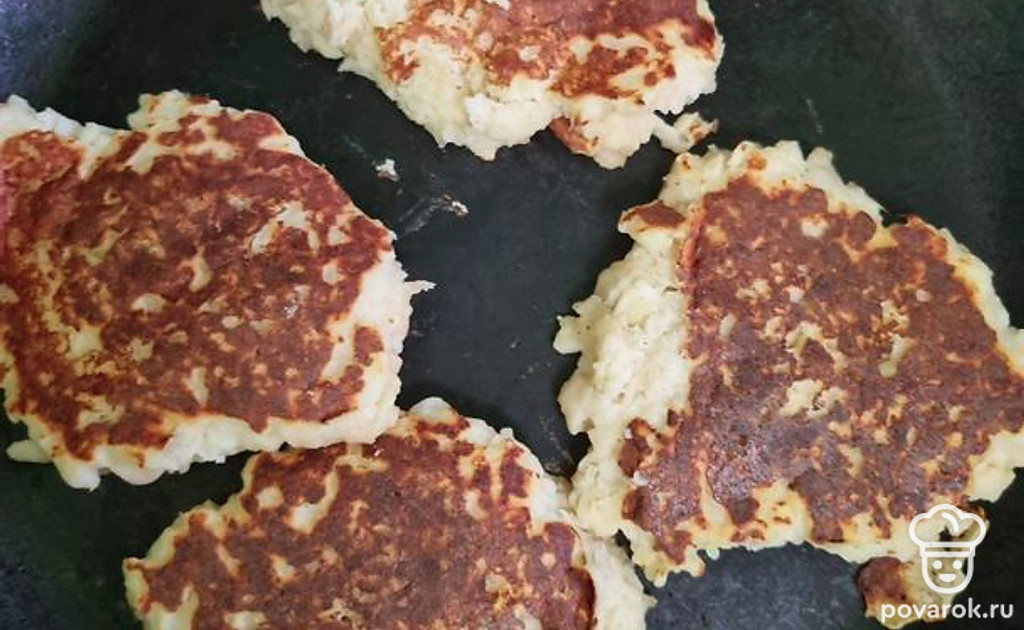 Выложить тесто в виде небольших оладьев на раскаленную сковороду с небольшим количеством масла. Обжарить на маленьком огне под крышкой с двух сторон до готовности.