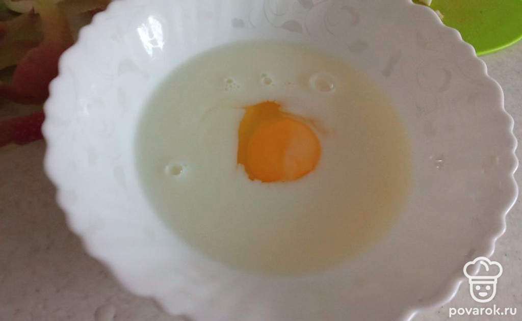 Молоко, яйцо, соду и муку перемешать.