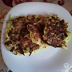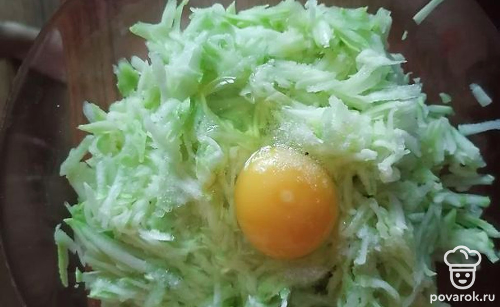 Кабачок натереть на крупной терке, добавить яйцо и перемешать.