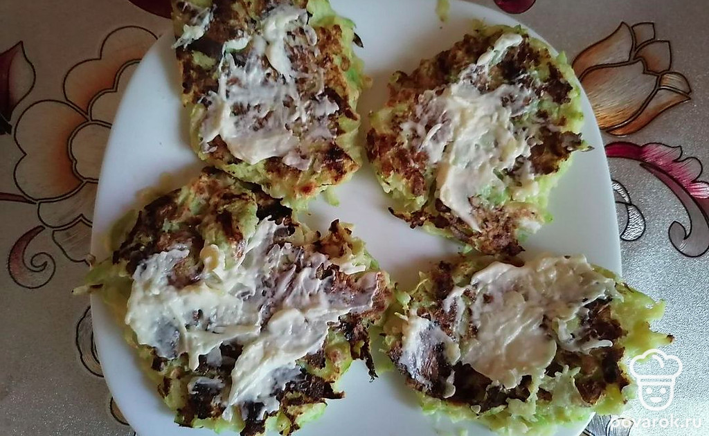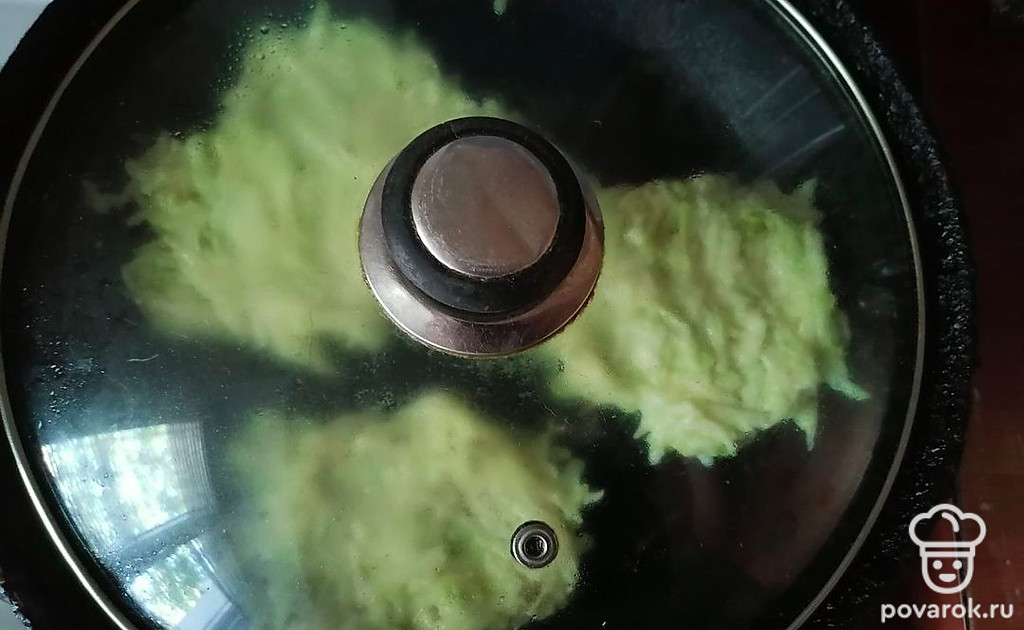 Сковороду разогреть с маслом и выложить ложкой тесто слегка разровняв. Жарить оладушки с двух сторон под крышкой до румяности (примерно по 3-4 минуты с каждой стороны).