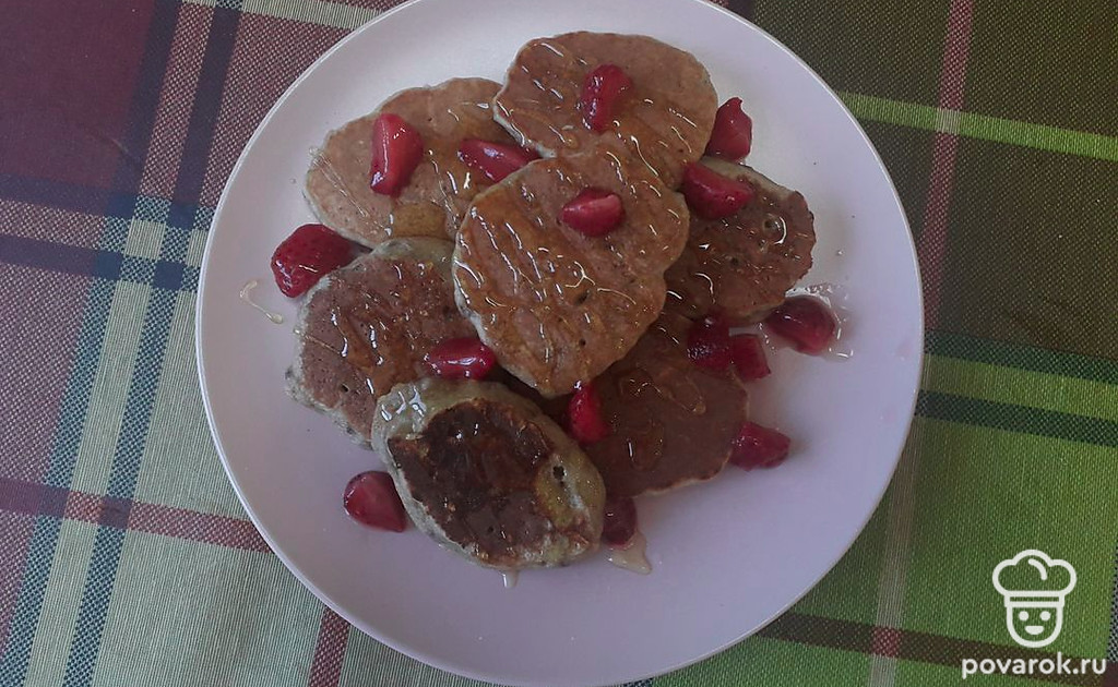 Перед подачей блюда на стол можно полить их сверху мёдом/вареньем/джемом или украсить фруктами.