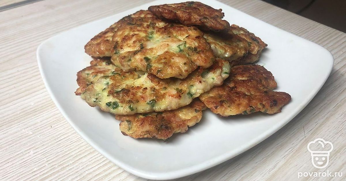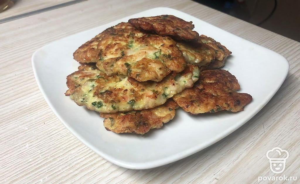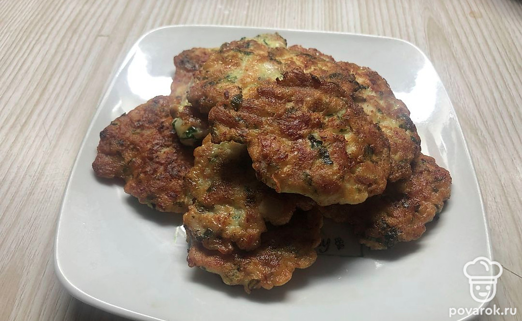 На раскалённую сковороду с маслом выкладывать получившуюся массу в форме оладьев, не очень толсто.