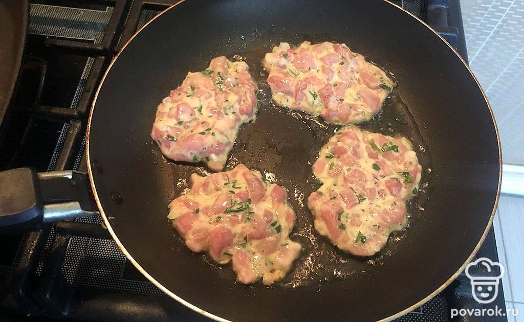 Обжарить по 2-3 мин с каждой стороны. Можно подержать минутку под крышкой.