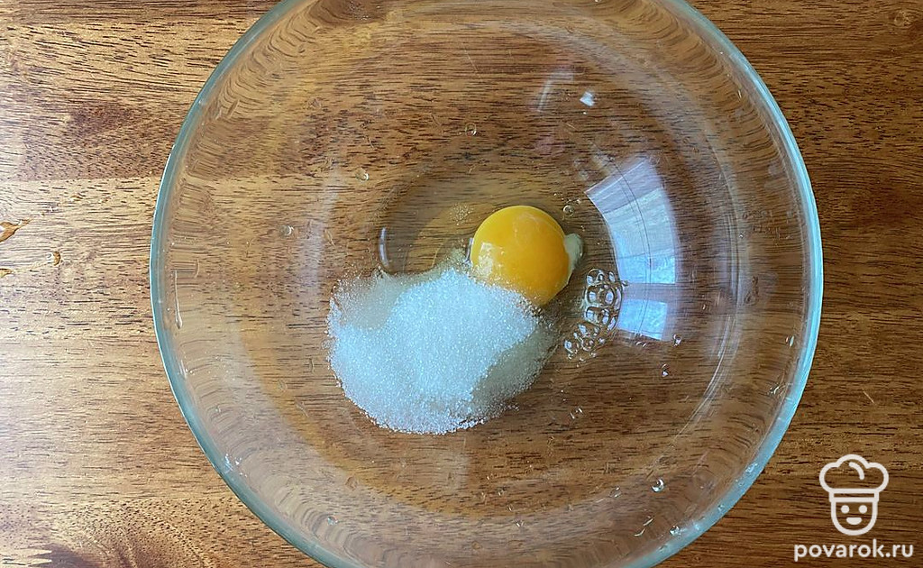Перемешайте сахар и яйцо.