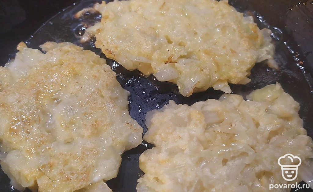 Тесто удобнее выкладывать на разогретую сковороду столовой ложкой и формировать оладушки. Жарим с 2 сторон. Приятного аппетита!