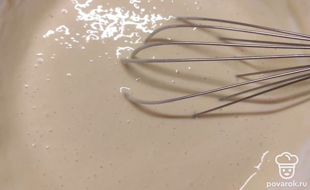 Смешайте ряженку и яйцо, добавьте сахар и размешайте венчиком до растворения. Добавьте муку, соль и соду, взбивайте, чтобы не было комочков.