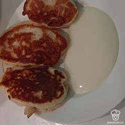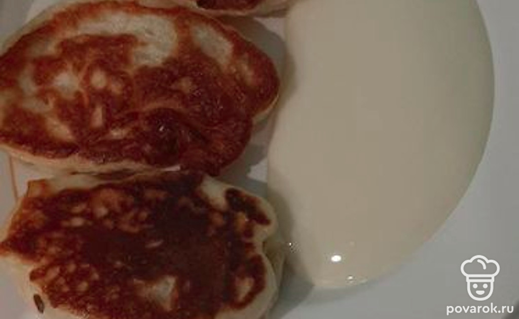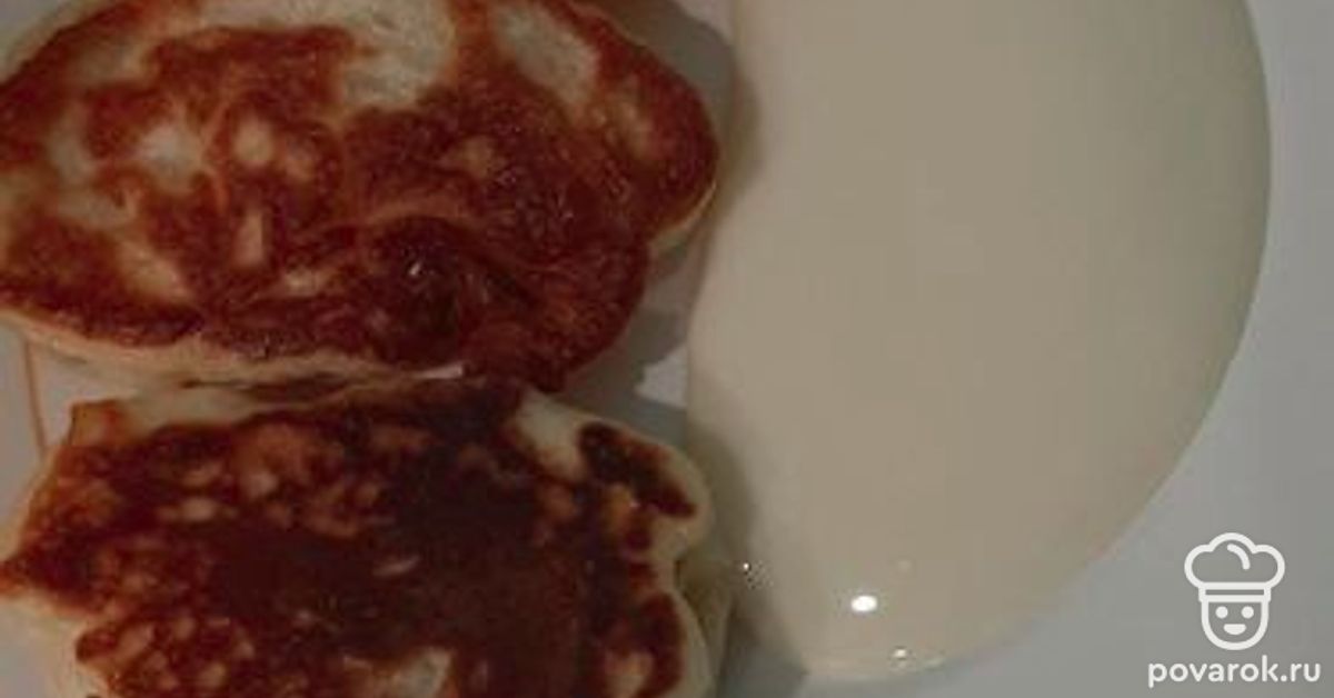 Готовые оладушки подавать со сметаной или вареньем. Мы любим со сгущенным молоком. Приятного аппетита!