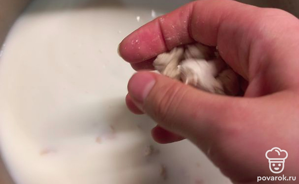 Подогреть молоко до температуры 35-40 градусов, добавить в молоко дрожжи, хорошенько перемешать.