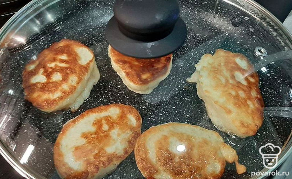 На сковороду налить растительное масло, поставить на плиту. В разогретую сковороду выложить тесто столовой ложкой порционно, обжарить с двух сторон. Чтобы тесто не прилипало к ложке, её необходимо смачивать холодной водой.