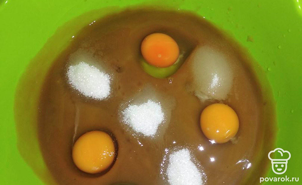 В пюре добавляем яйца и сахар. Перемешиваем.