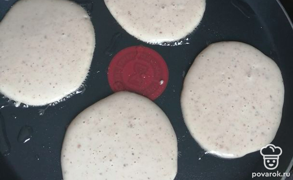 Вылить тесто порционно на сковороду. Обжарить по 20 секунд с каждой стороны.