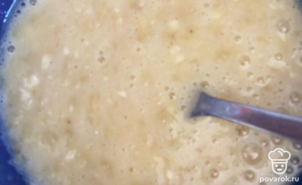 Банан разминаем с яйцом.