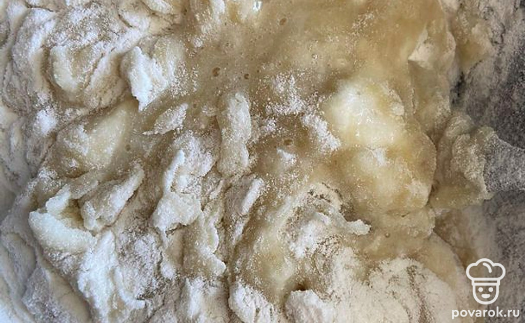 Добавляем муку, тщательно перемешиваем.