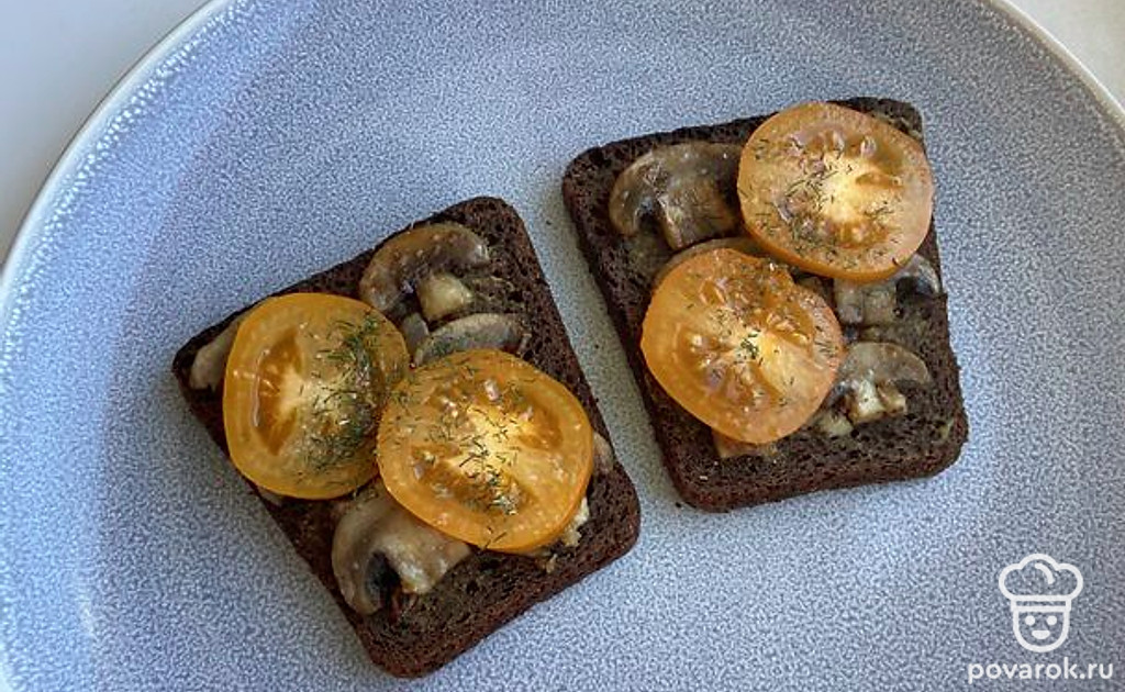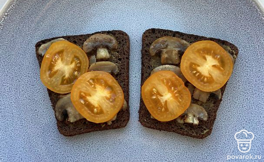 Нарежьте помидор кольцами и выложите на бутерброды.