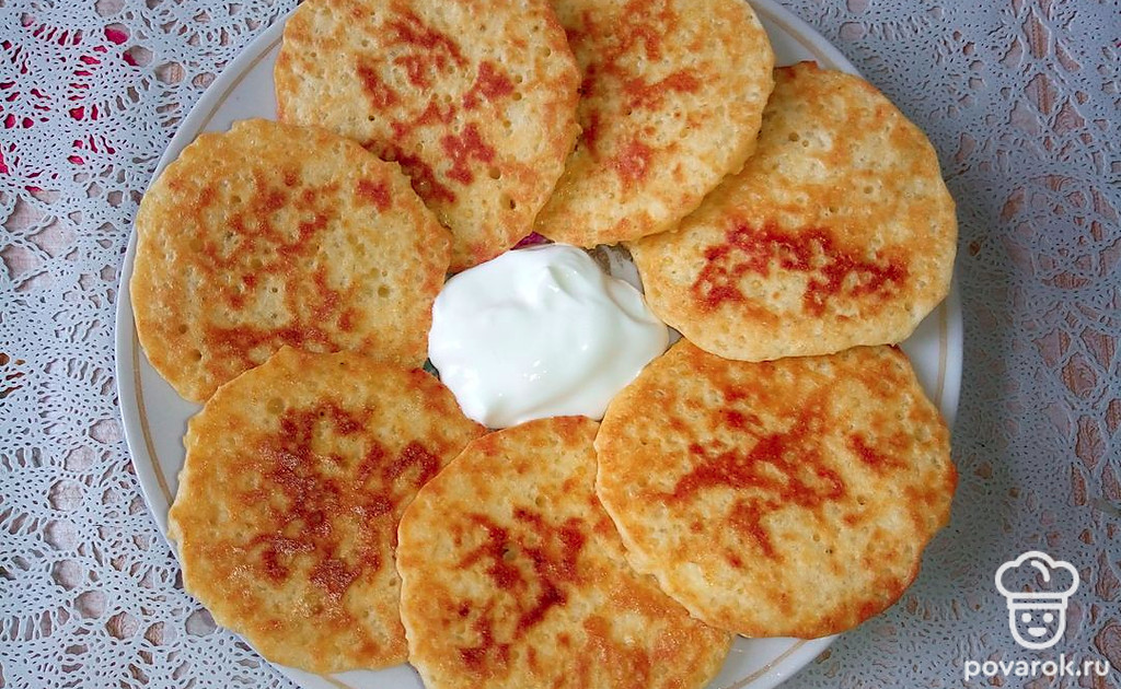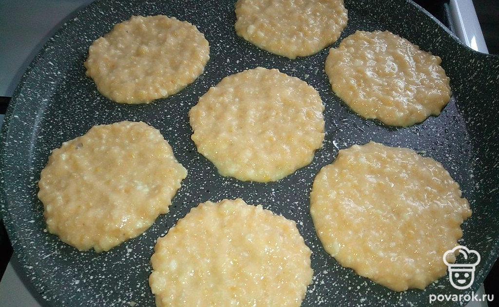 Вкусные и очень сытные оладьи из пшенной каши и творога. Прекрасное решение приготовить такие оладьи на завтрак.